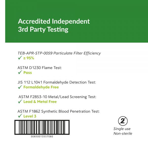 - High particle filtration efficiency: >95% PFE