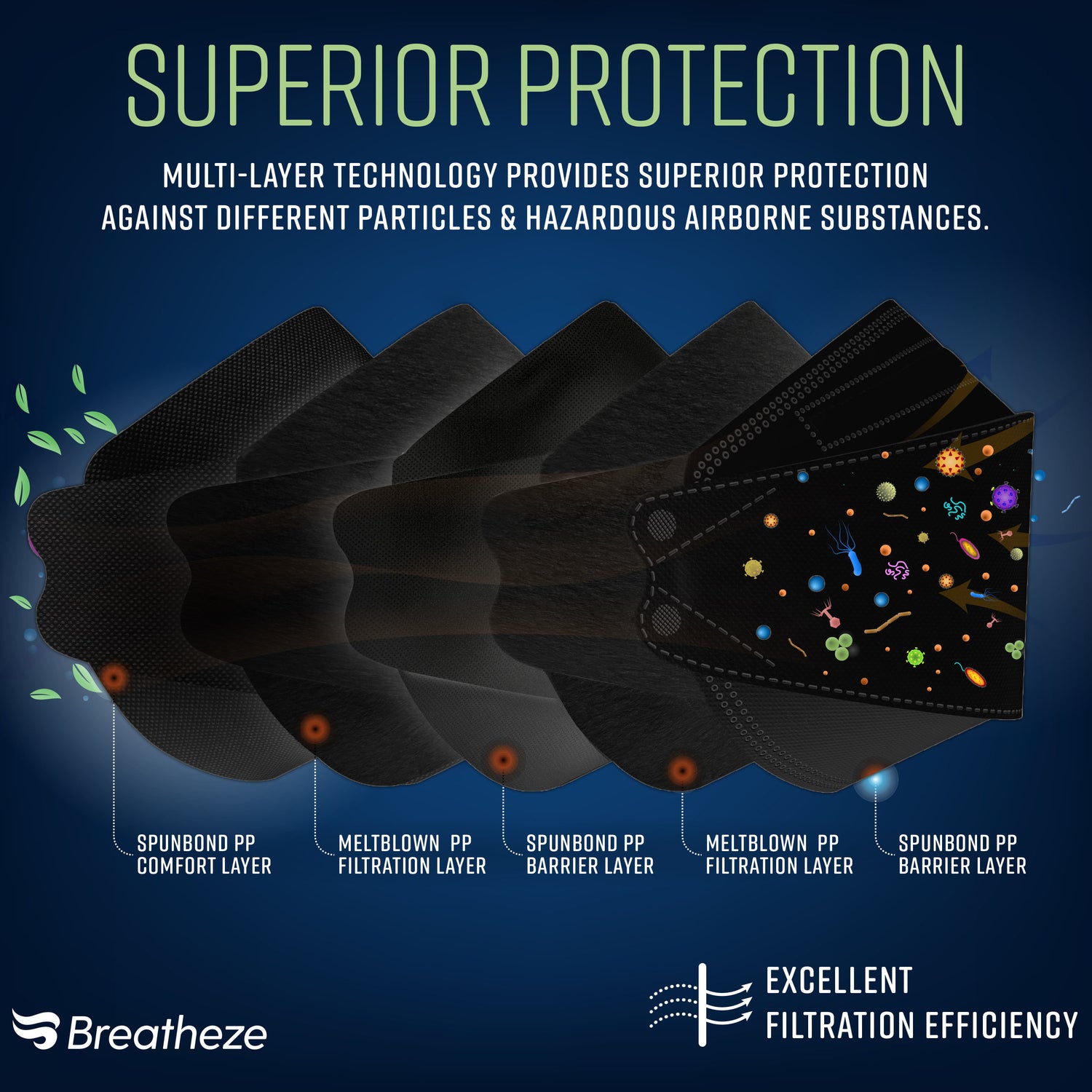 Get the best fitting, highest performing KN95 mask we make. The Breatheze 3D Style KN95 is ultra-thin, ultra lightweight, and yet it consistently performs at an incredible 99.5%+ PFE but don't take our word for it, see the test results from internationally accredited, independent, 3rd party labs.